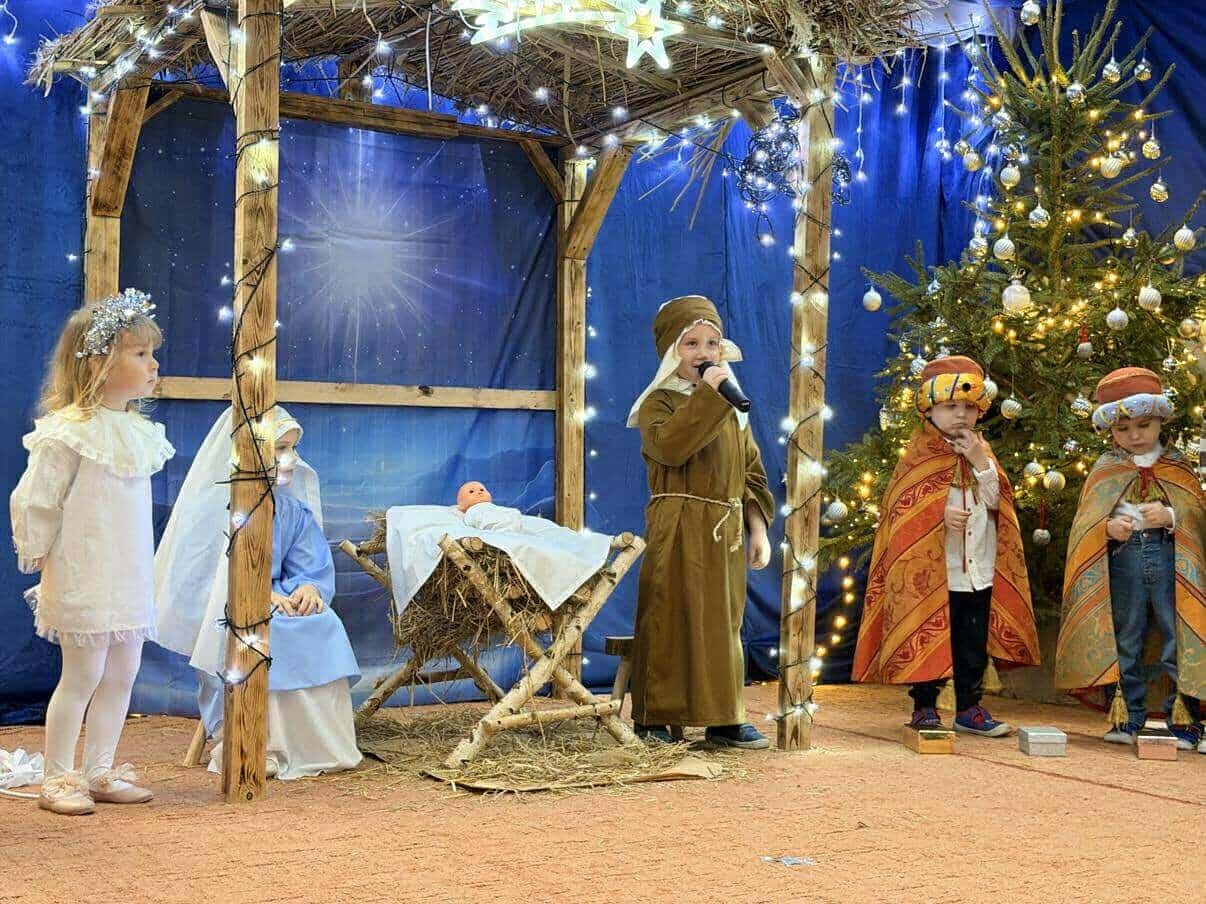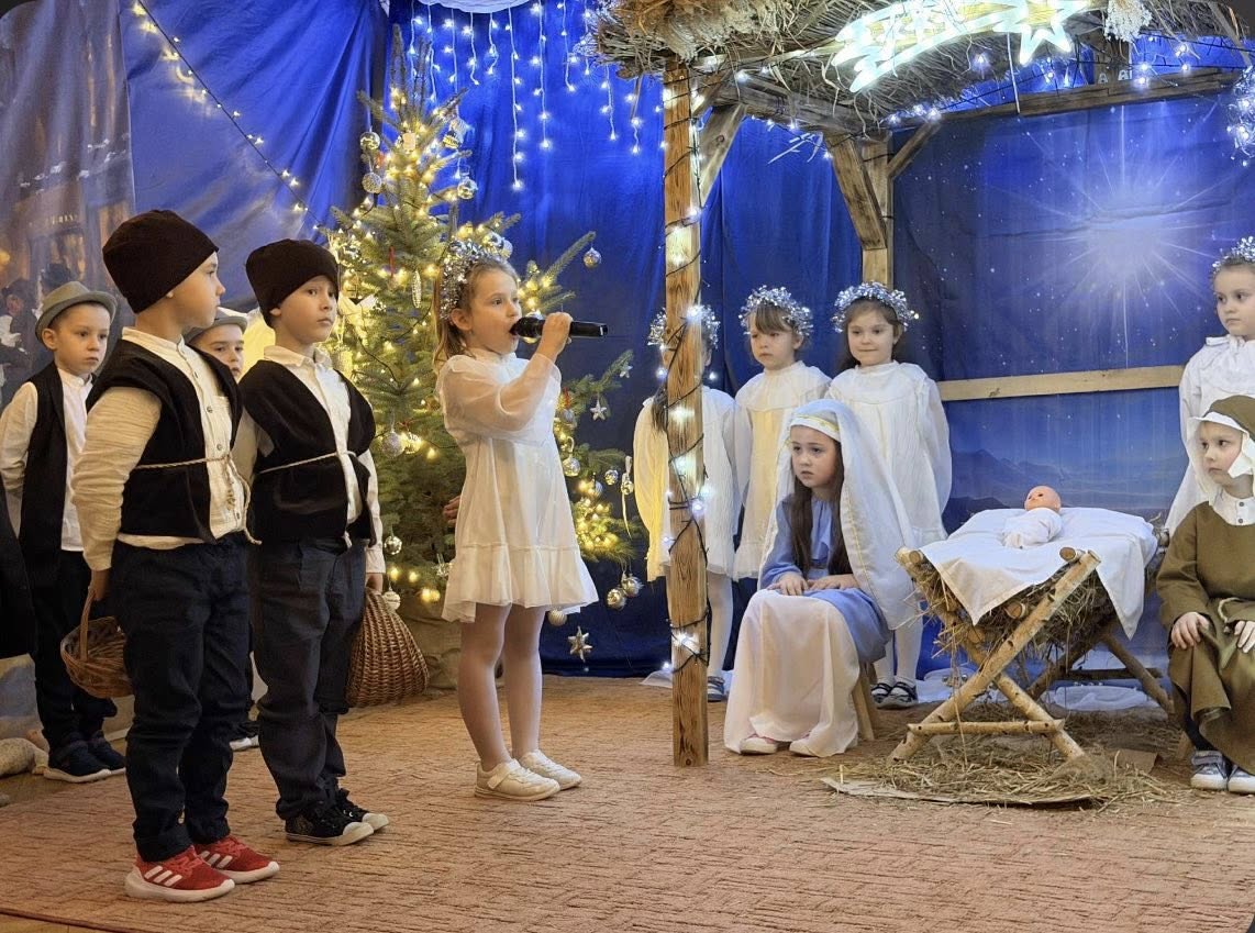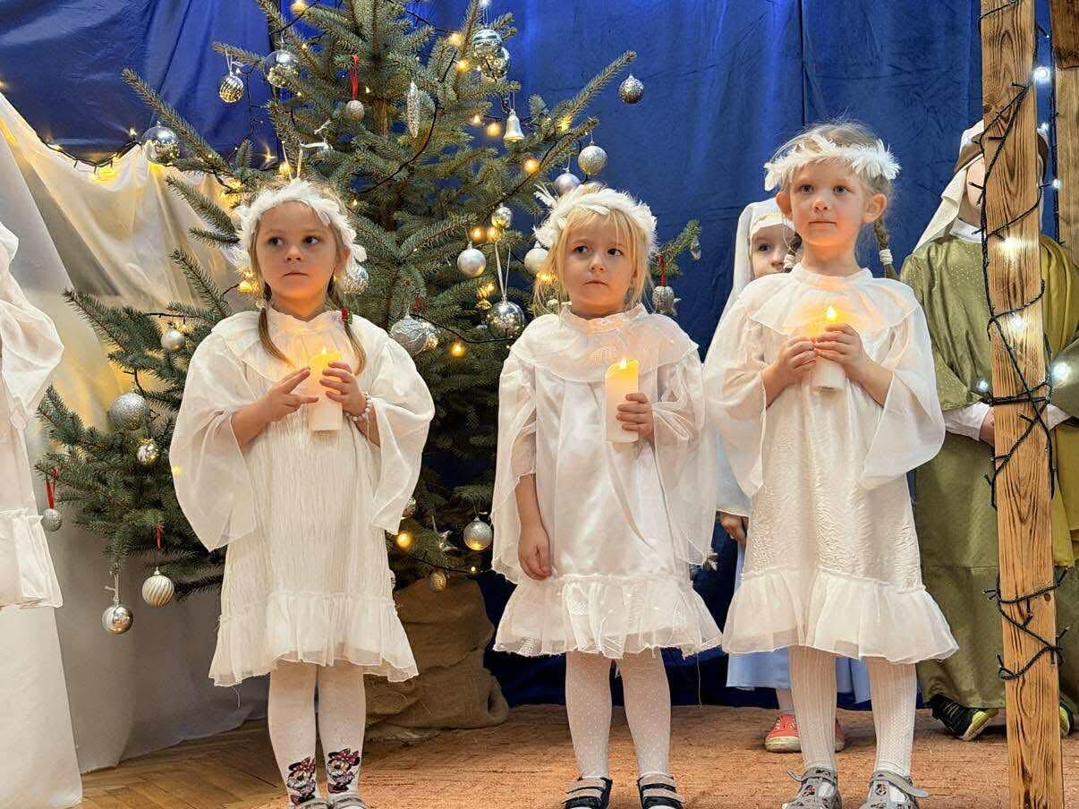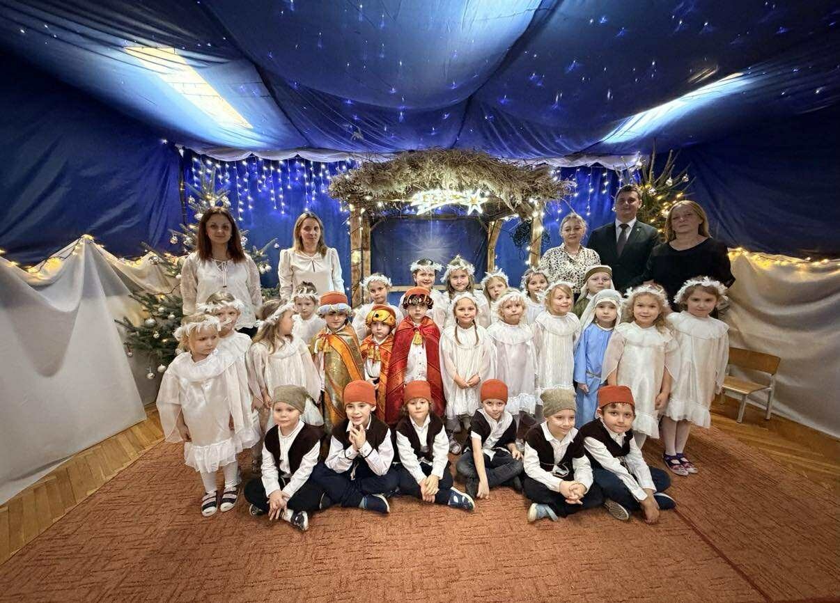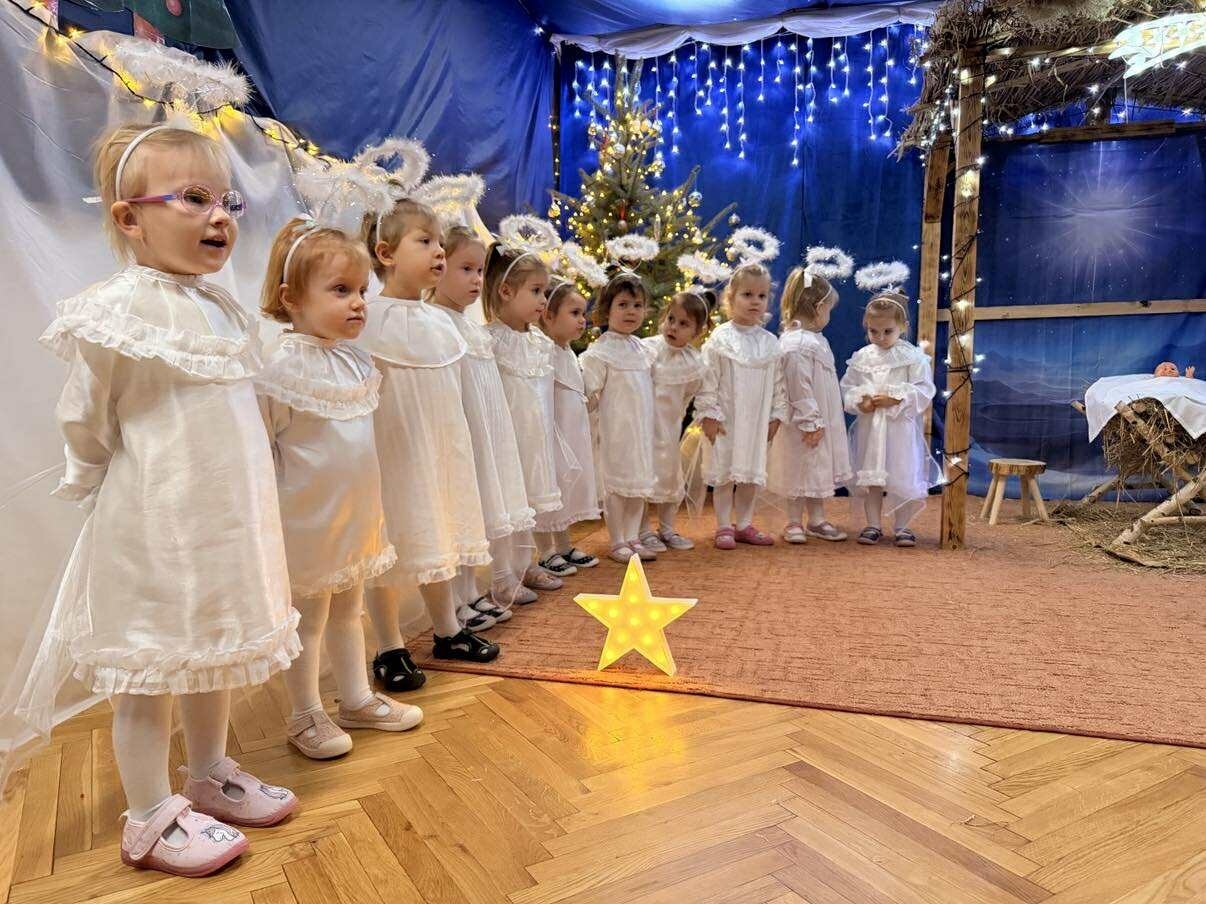 W tym tygodniu w każdej grupie odbywało się spotkanie jasełkowe. Głównym celem uroczystości było wprowadzenie dzieci w radosną atmosferę Świąt Bożego Narodzenia. Przedszkolaki z wielkim przejęciem, najpiękniej jak umiały, dostarczyły wszystkim gościom niezwykłych doznań i wzruszeń recytując wiersze, śpiewając pastorałki oraz tańcząc. Ponadto w grupie Żuczki przedstawienie jasełkowe podziwiali zaproszeni goście: Burmistrz Zelowa Kamil Świtała oraz dyrektor Biblioteki Publicznej Miasta i Gminy w Zelowie Monika Jersak.