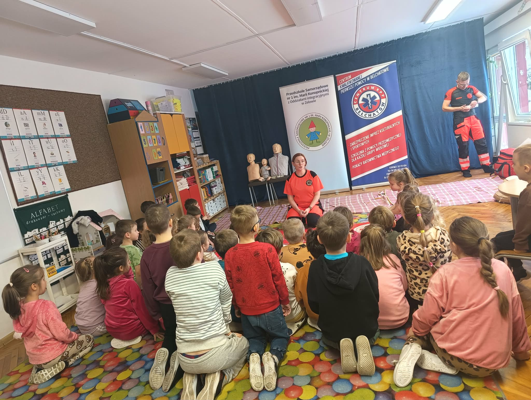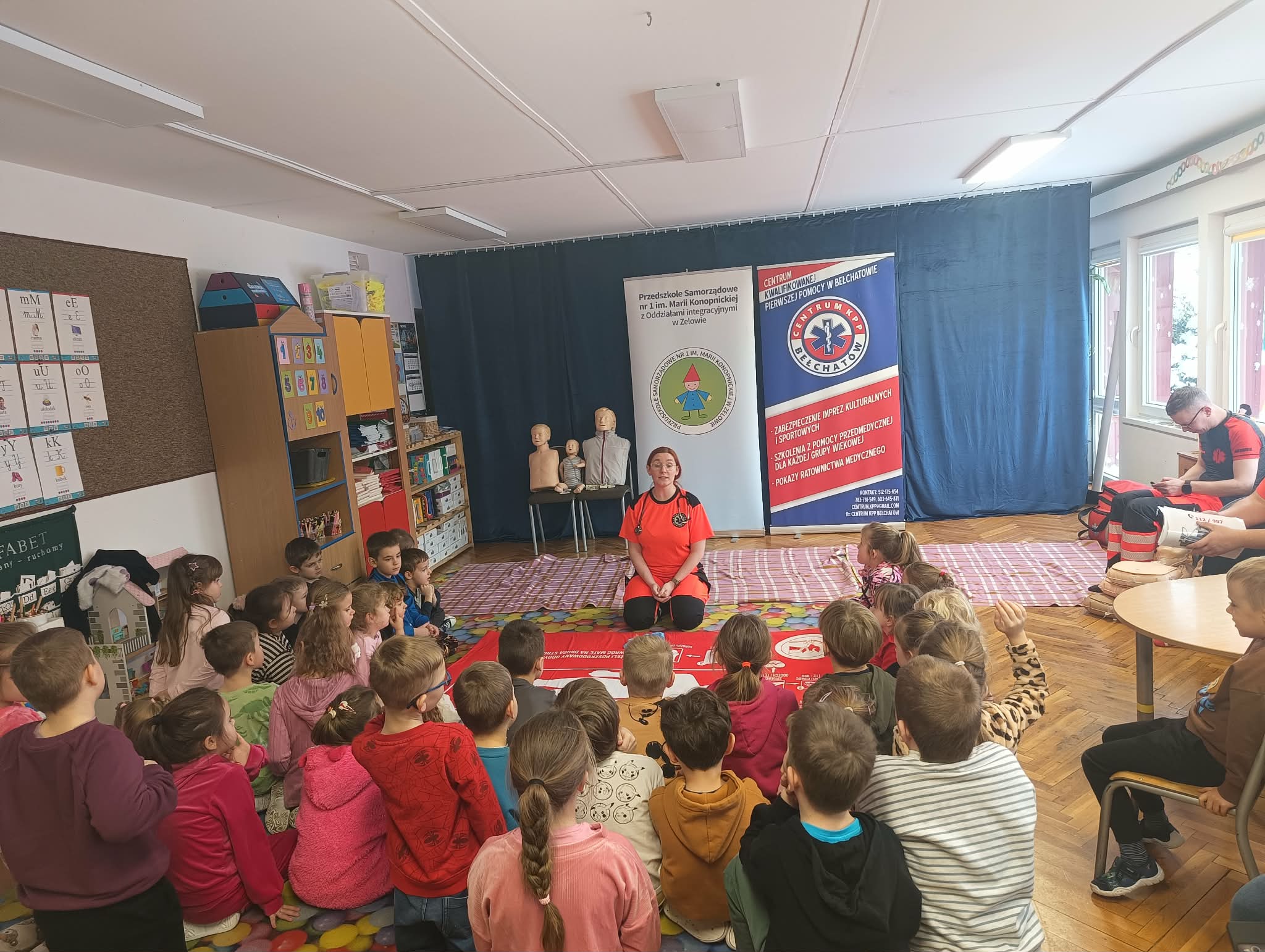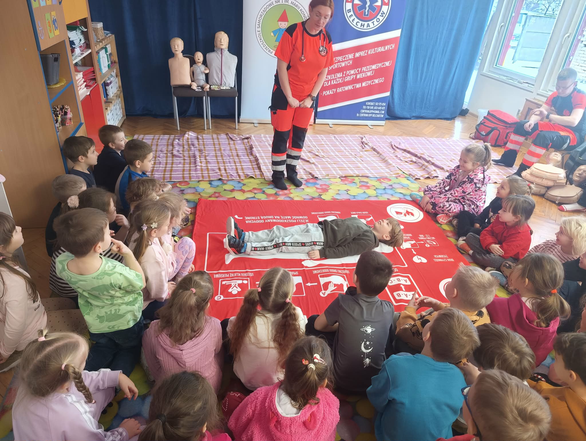 W dniu 12 stycznia nasze przedszkolaki wzięły udział w warsztatach udzielania Pierwszej Pomocy, które przeprowadzone zostały przez Ratowników Medycznych z Centrum Kwalifikowanej Pierwszej Pomocy w Bełchatowie.